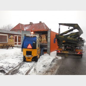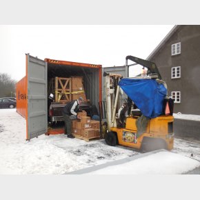 Containeren bliver læsset dagen før vi tager hjem igen på sådan en tur, så vi ved hvordan det bliver læsset så vi er sikker på det kommer hjem i god behold